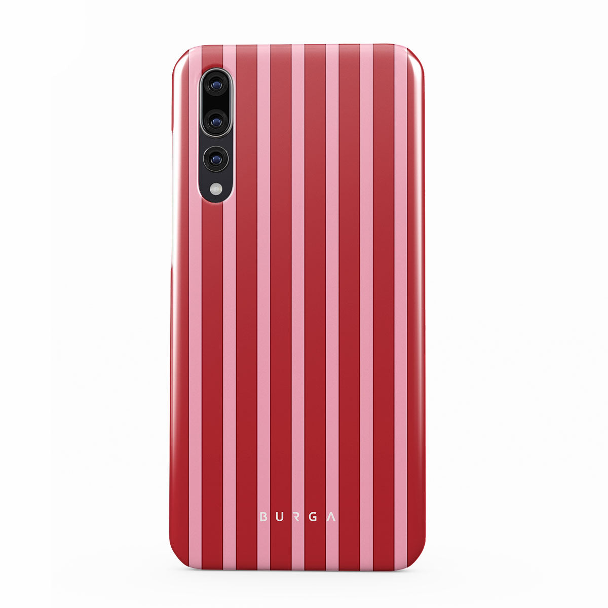 Stripes of red, like strawberry swirls on toast, this Huawei P20 phone case design brings the sweet memory of breakfasts that start with a spread of homemade love.