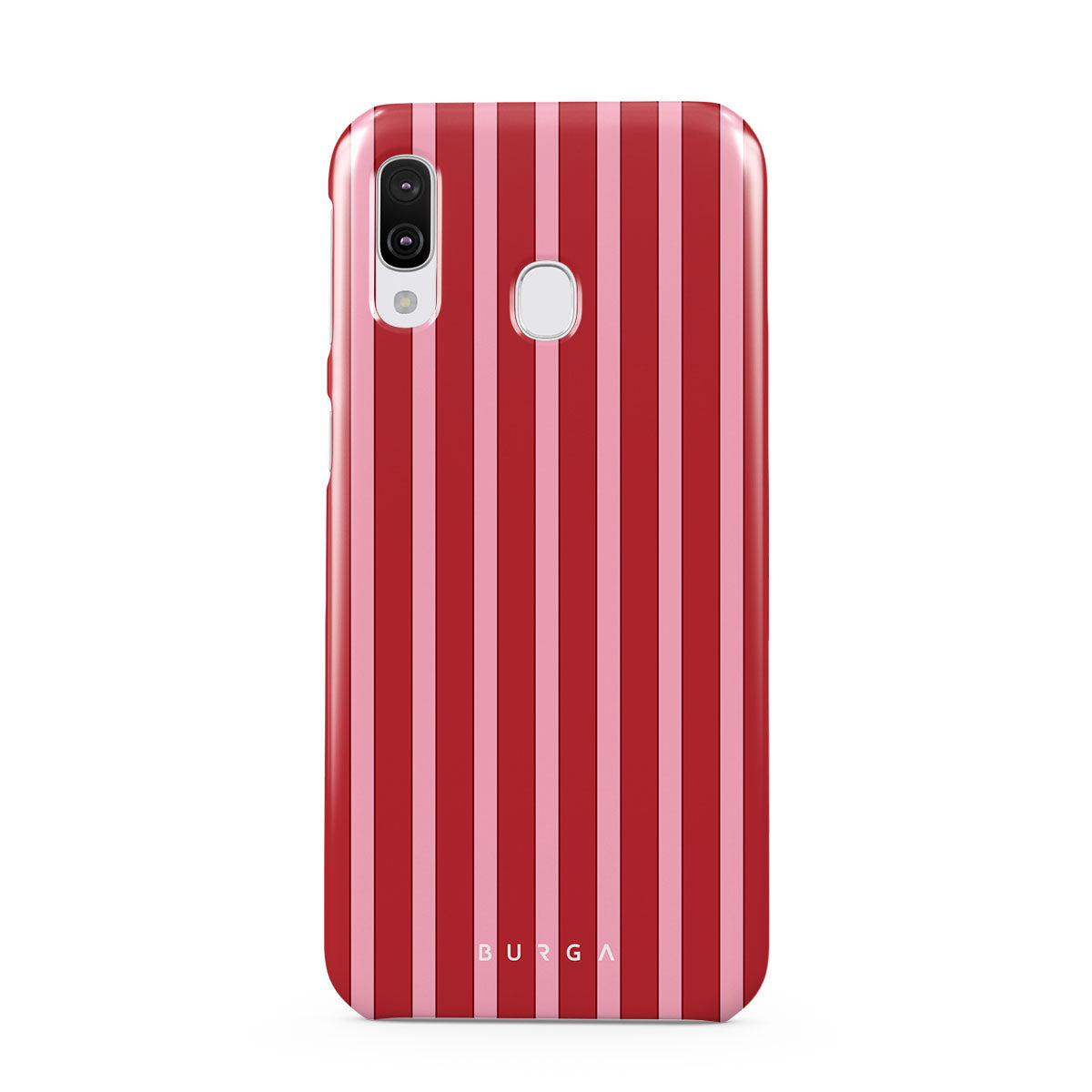 Stripes of red, like strawberry swirls on toast, this Samsung Galaxy A40 phone case design brings the sweet memory of breakfasts that start with a spread of homemade love.