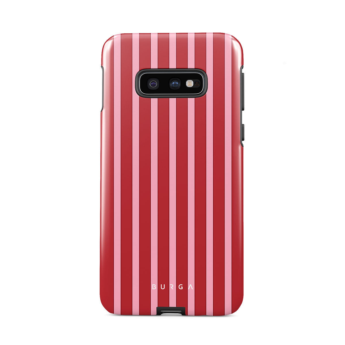 Stripes of red, like strawberry swirls on toast, this Samsung Galaxy S10E phone case design brings the sweet memory of breakfasts that start with a spread of homemade love.