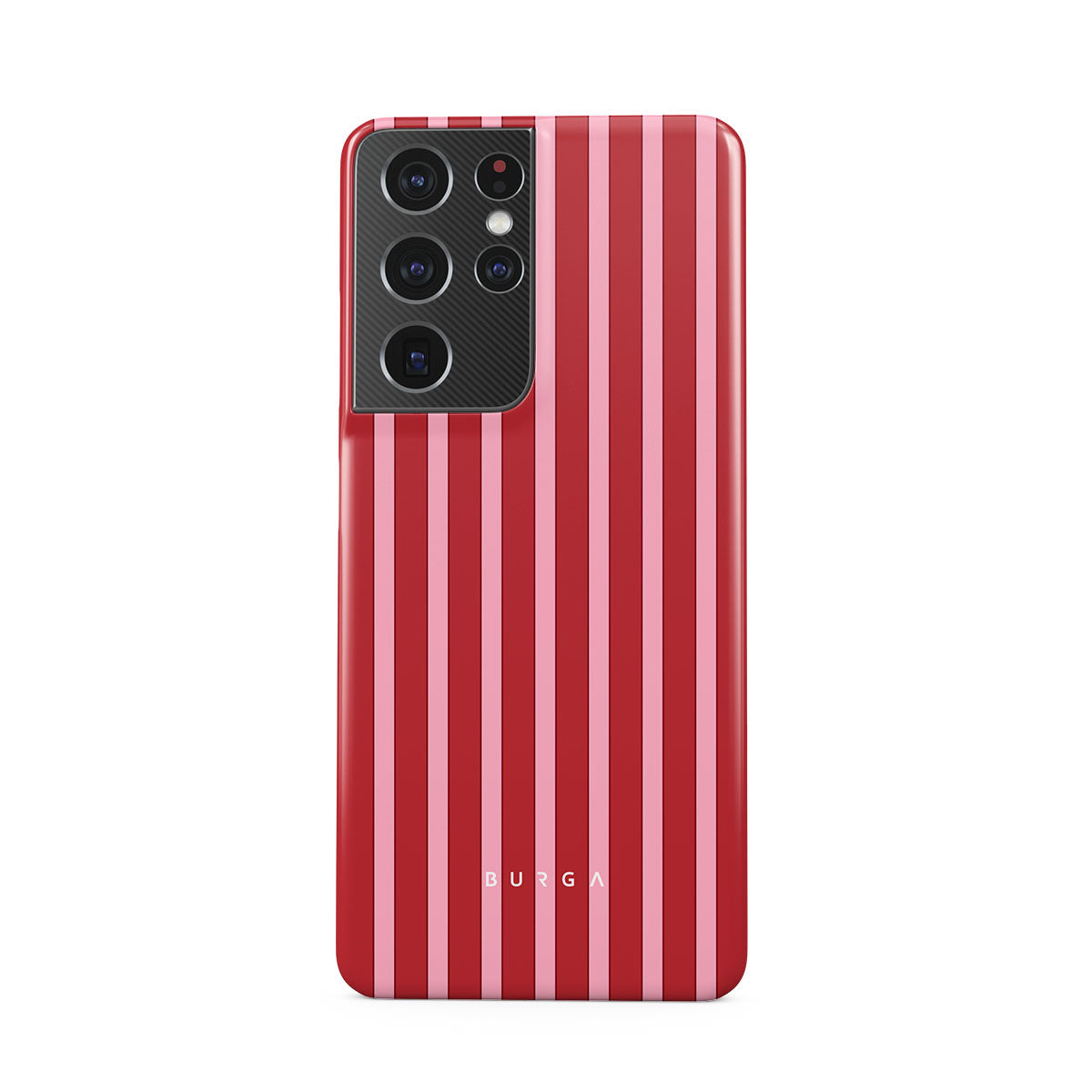 Stripes of red, like strawberry swirls on toast, this Samsung Galaxy S21 Ultra phone case design brings the sweet memory of breakfasts that start with a spread of homemade love.
