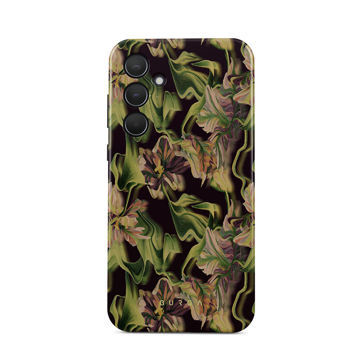 Let's wander into the world of humidity, fog, and deep green color. Our Subtropical Samsung Galaxy A35 phone case will add that exotic touch to your life. The flower pattern is as clear as it seems to be melting away. The purple and orange shades in the flowers will add that subtle splash of color to your style without being too provocative.