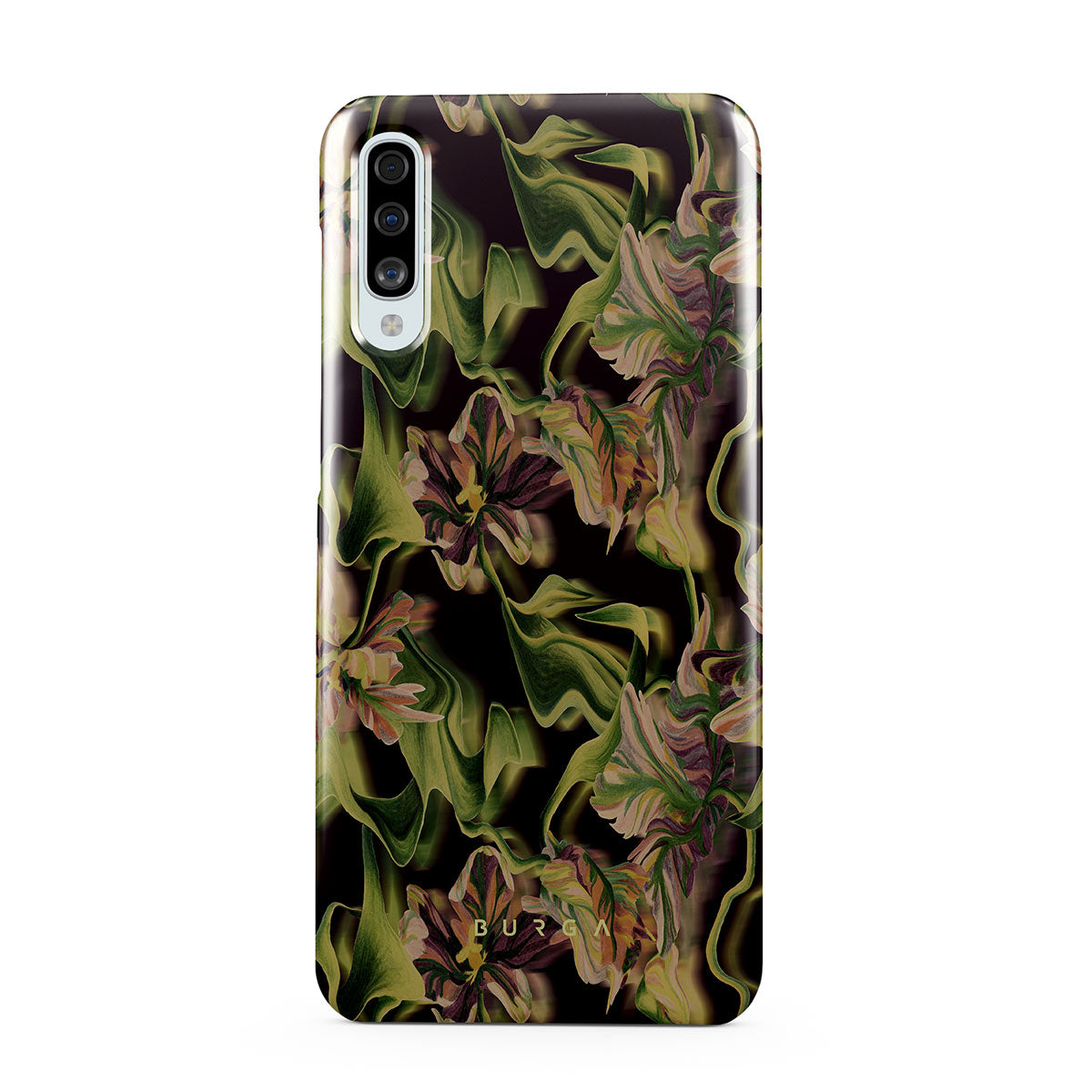 Let's wander into the world of humidity, fog, and deep green color. Our Subtropical Samsung Galaxy A50 phone case will add that exotic touch to your life. The flower pattern is as clear as it seems to be melting away. The purple and orange shades in the flowers will add that subtle splash of color to your style without being too provocative.