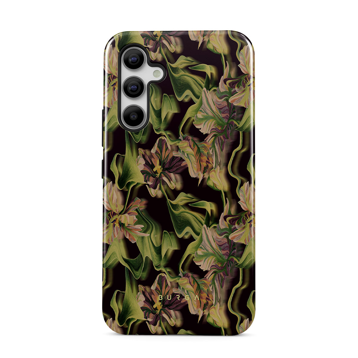 Let's wander into the world of humidity, fog, and deep green color. Our Subtropical Samsung Galaxy A55 phone case will add that exotic touch to your life. The flower pattern is as clear as it seems to be melting away. The purple and orange shades in the flowers will add that subtle splash of color to your style without being too provocative.