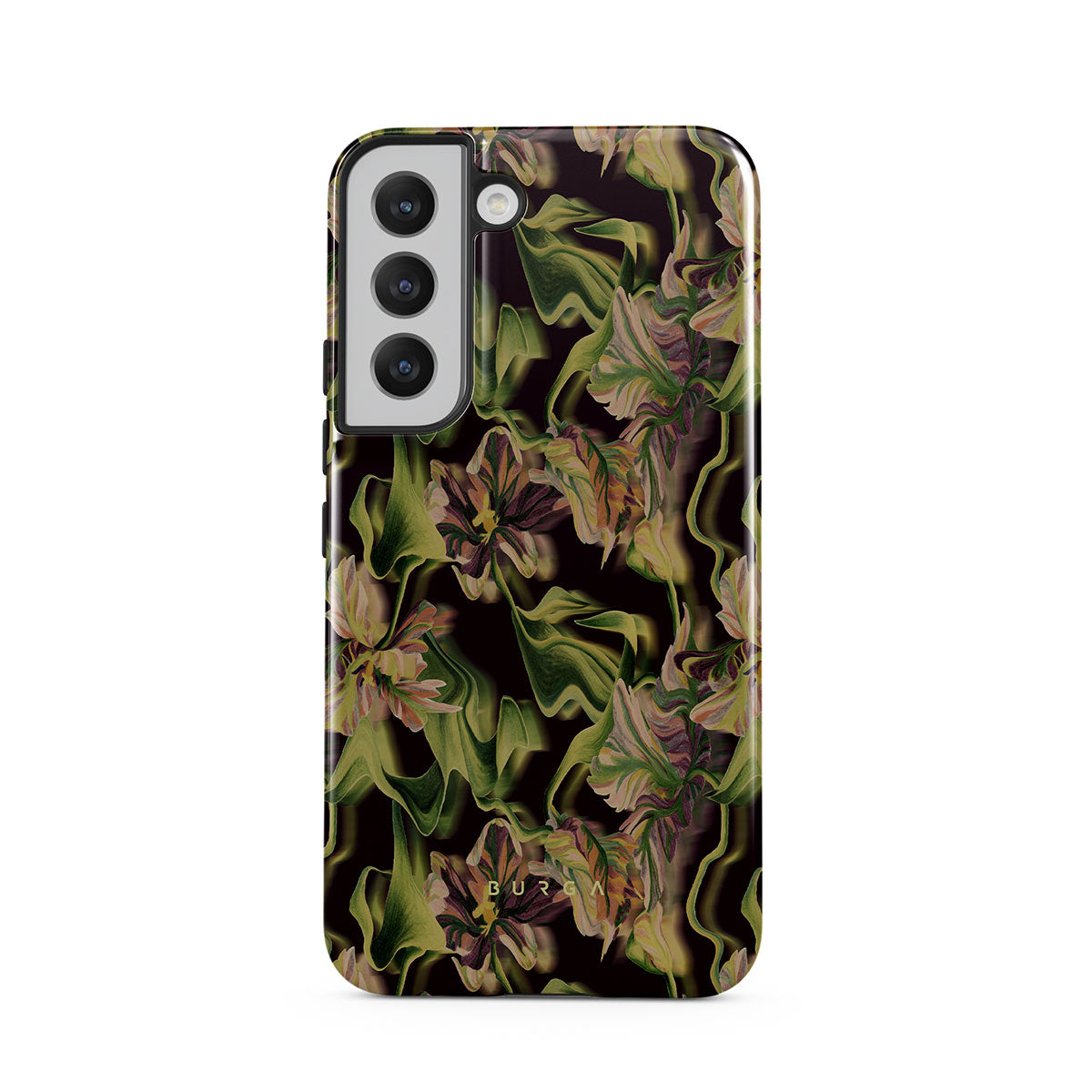 Let's wander into the world of humidity, fog, and deep green color. Our Subtropical Samsung Galaxy S22 phone case will add that exotic touch to your life. The flower pattern is as clear as it seems to be melting away. The purple and orange shades in the flowers will add that subtle splash of color to your style without being too provocative.