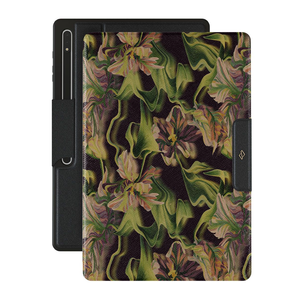 Let's wander into the world of humidity, fog, and deep green color. Our Subtropical Galaxy Tab Air 10.9 (4th Gen) folio case will add that exotic touch to your life. The flower pattern is as clear as it seems to be melting away. The purple and orange shades in the flowers will add that subtle splash of color to your style without being too provocative.