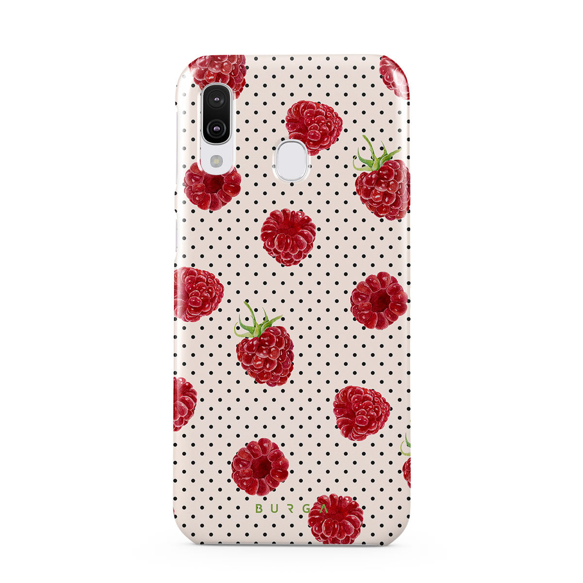 This Samsung Galaxy A40 phone case design spills strawberries like secrets, the ones that taste of long days in the sun and remind you that some summers never end.