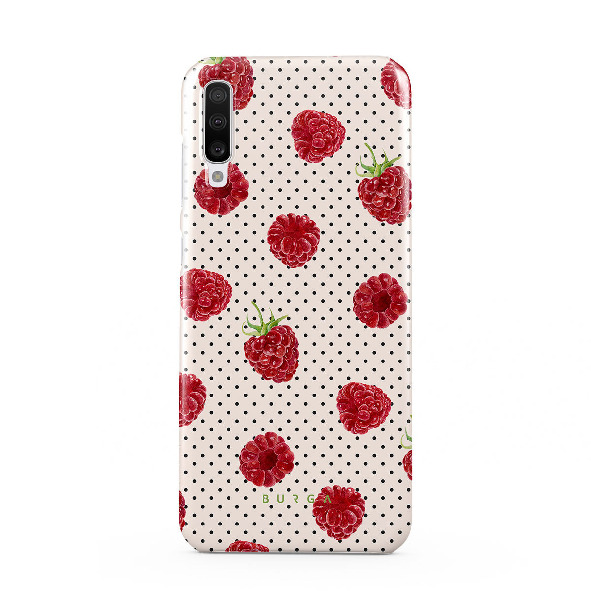 This Samsung Galaxy A70 phone case design spills strawberries like secrets, the ones that taste of long days in the sun and remind you that some summers never end.