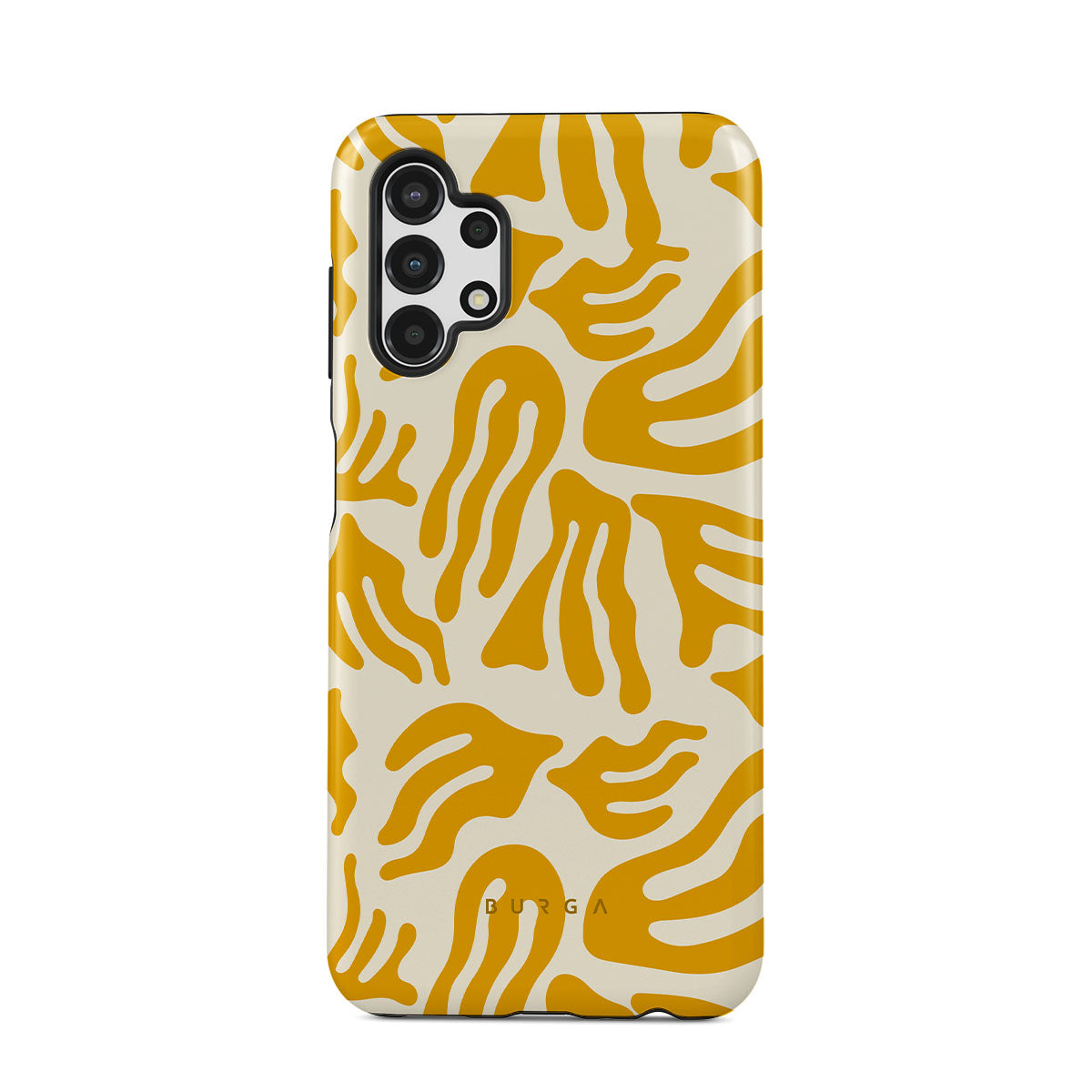 Cheerful and bursting with energy, the Sunbeams Samsung Galaxy A13 4G case captures the essence of a perfect summer day. The warm, golden tones and playful patterns create a sense of pure happiness and carefree fun. Our Sunbeams design will brighten up even the driest of days.