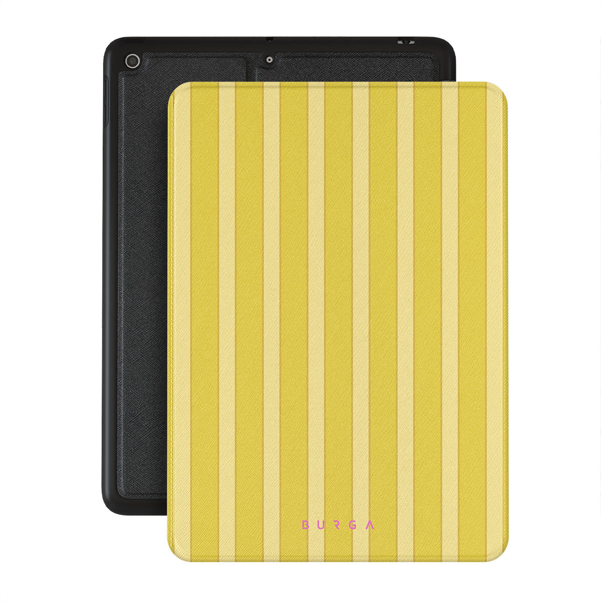 Bask in the glow of Sunbreak. This iPad 10.2 (9th/8th/7th Gen) folio case design features bold yellow stripes, reminiscent of beachside cabanas and sunny summer days. It’s a chic celebration of joy and simplicity.