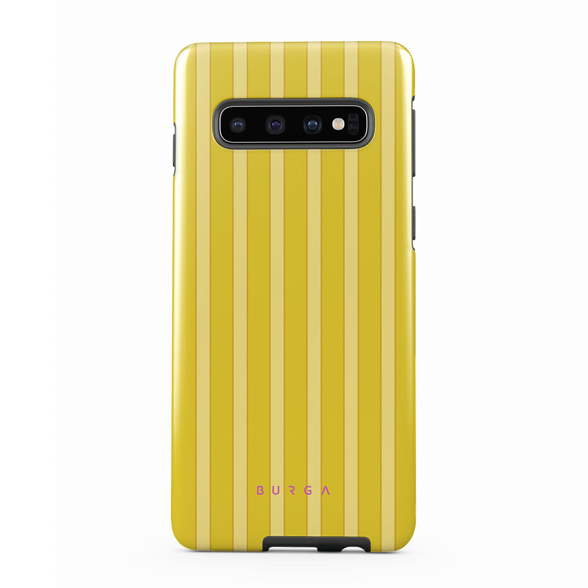 Bask in the glow of Sunbreak. This Samsung Galaxy S10 4G phone case design features bold yellow stripes, reminiscent of beachside cabanas and sunny summer days. It’s a chic celebration of joy and simplicity.