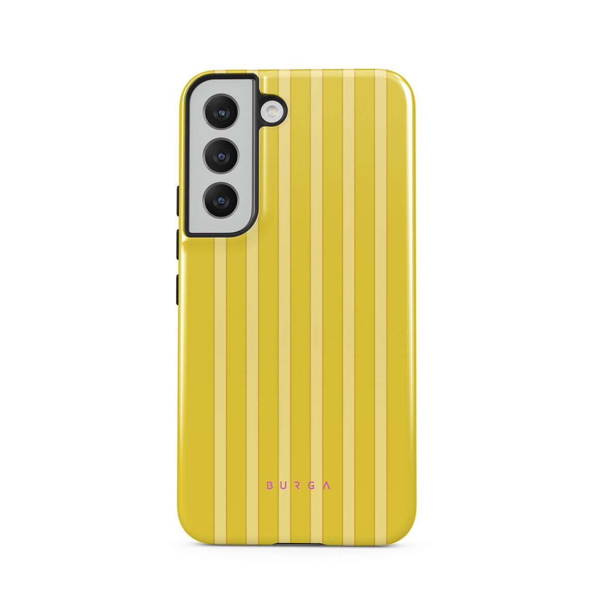 Bask in the glow of Sunbreak. This Samsung Galaxy S22 phone case design features bold yellow stripes, reminiscent of beachside cabanas and sunny summer days. It’s a chic celebration of joy and simplicity.