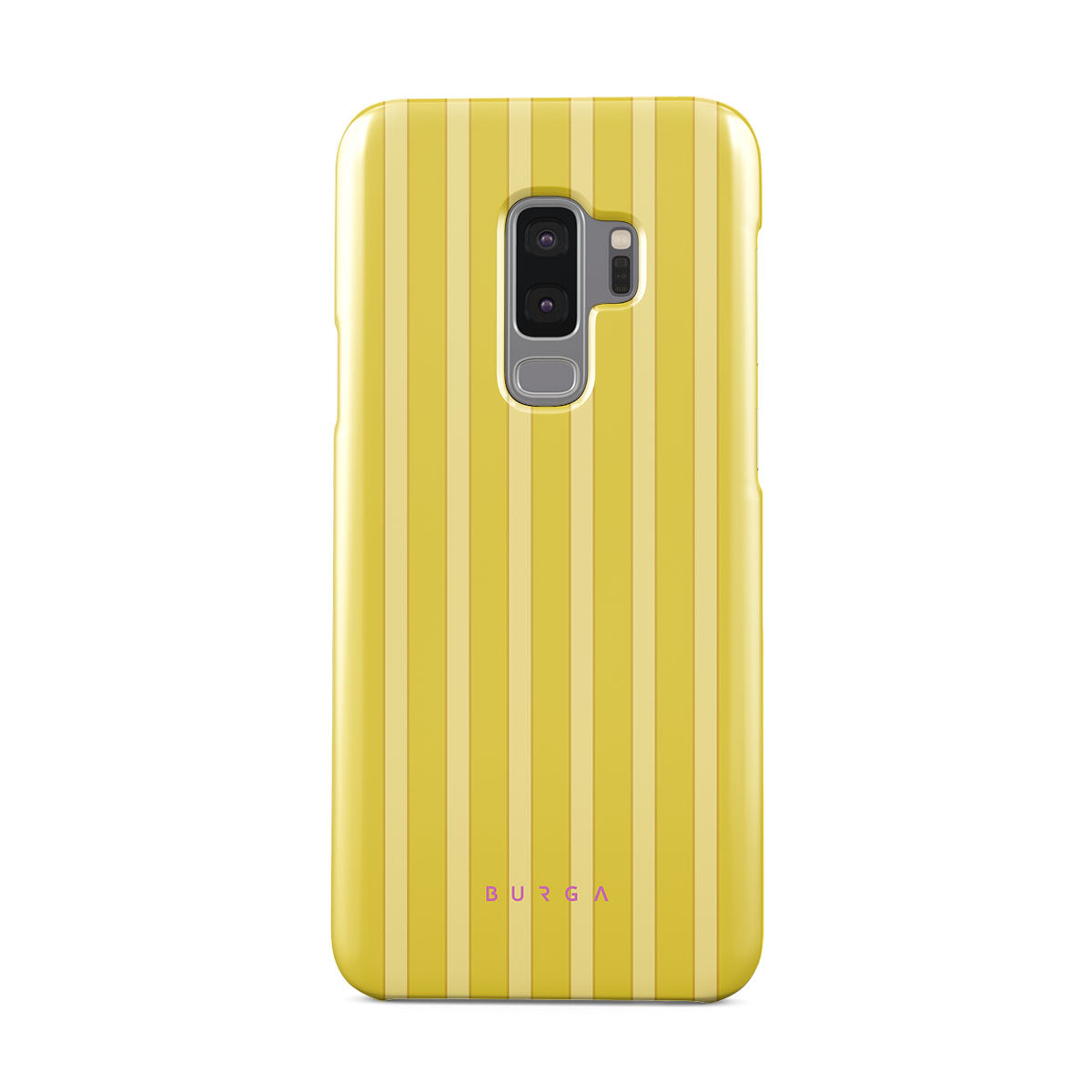 Bask in the glow of Sunbreak. This Samsung Galaxy S9 Plus phone case design features bold yellow stripes, reminiscent of beachside cabanas and sunny summer days. It’s a chic celebration of joy and simplicity.