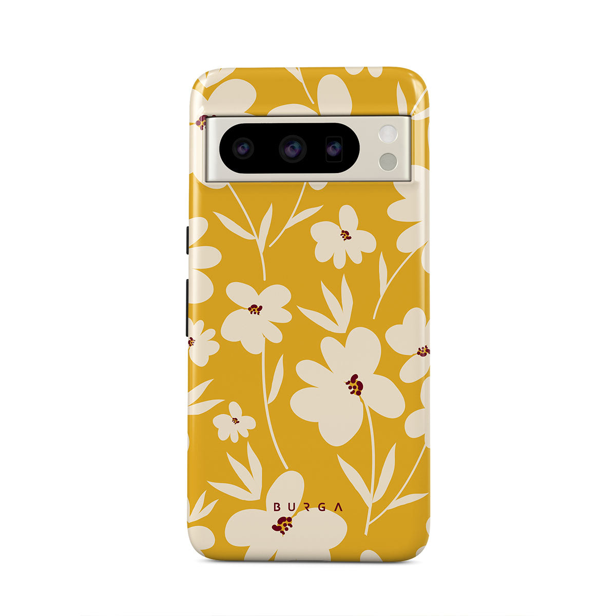 Full of fresh produce, warm rays of sunshine, and relaxing moments, our Sunday Market Google Pixel 8 Pro phone case encase all of this! The vintage mustard-yellow background with beautiful creme flowers will add that soft floral touch to your wardrobe while protecting your device from unexpected falls!