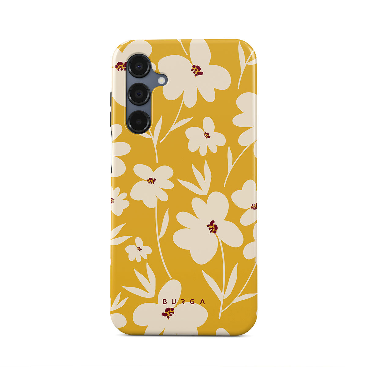 Full of fresh produce, warm rays of sunshine, and relaxing moments, our Sunday Market Samsung Galaxy A16 phone case encase all of this! The vintage mustard-yellow background with beautiful creme flowers will add that soft floral touch to your wardrobe while protecting your device from unexpected falls!