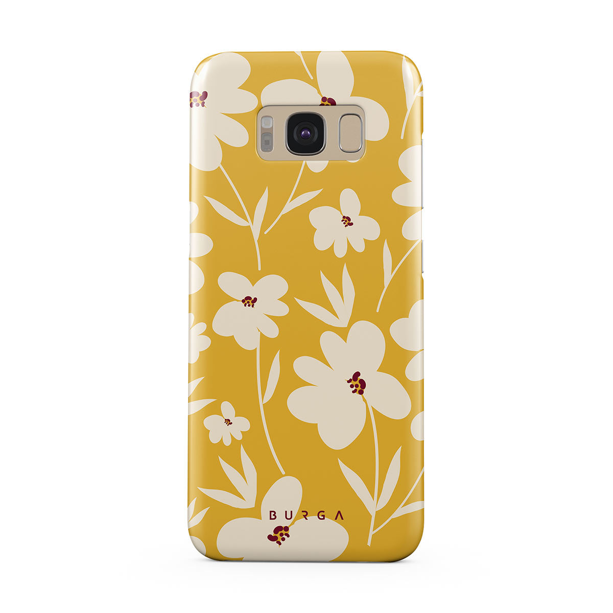Full of fresh produce, warm rays of sunshine, and relaxing moments, our Sunday Market Samsung Galaxy S8 phone case encase all of this! The vintage mustard-yellow background with beautiful creme flowers will add that soft floral touch to your wardrobe while protecting your device from unexpected falls!
