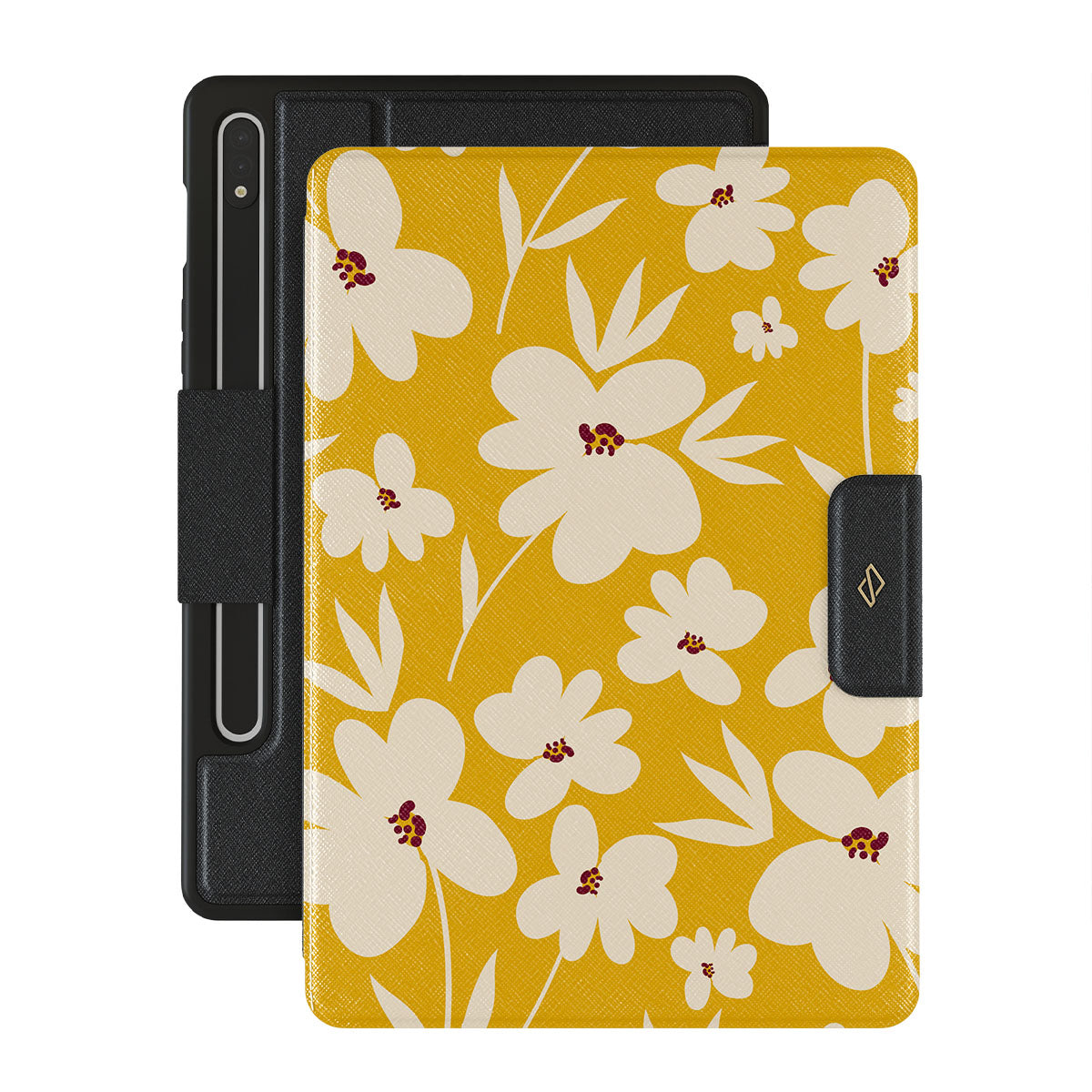 Full of fresh produce, warm rays of sunshine, and relaxing moments, our Sunday Market {Galaxy Tab Model} Samsung Galaxy Tab S9 FE folio case encase all of this! The vintage mustard-yellow background with beautiful creme flowers will add that soft floral touch to your wardrobe while protecting your device from unexpected falls!