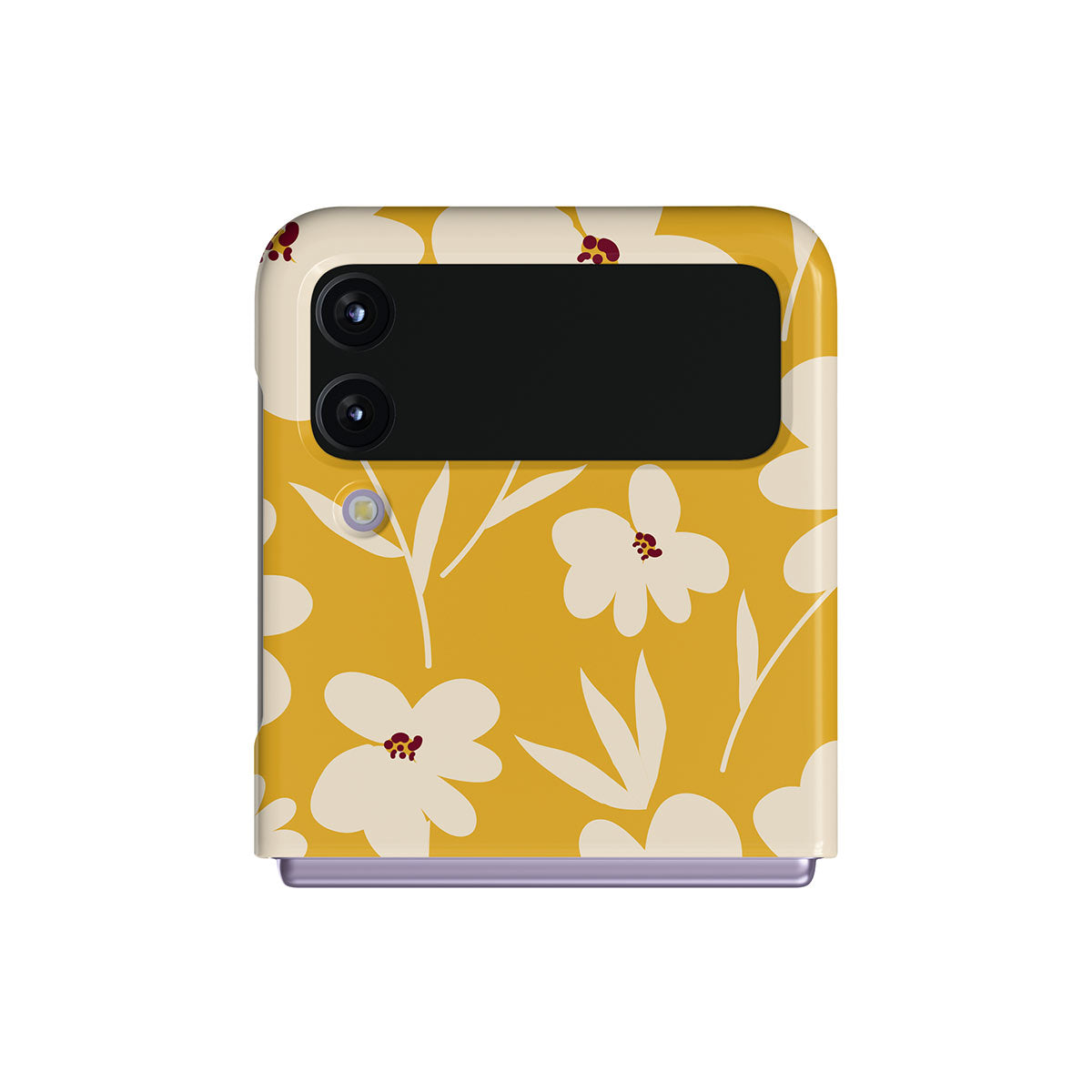 Full of fresh produce, warm rays of sunshine, and relaxing moments, our Sunday Market Samsung Galaxy Z Flip 4 phone case encase all of this! The vintage mustard-yellow background with beautiful creme flowers will add that soft floral touch to your wardrobe while protecting your device from unexpected falls!