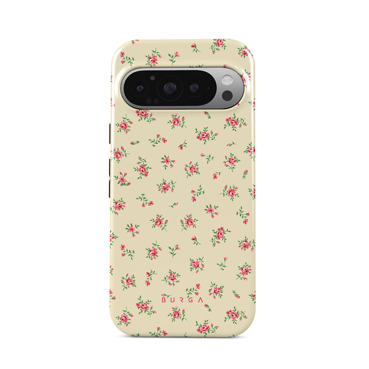 A daydream of soft pink petals on creamy yellow, reminiscent of that perfect light dress, twirling in the golden light of a lazy afternoon—that’s the Sundress Google Pixel 9 Pro phone case design.