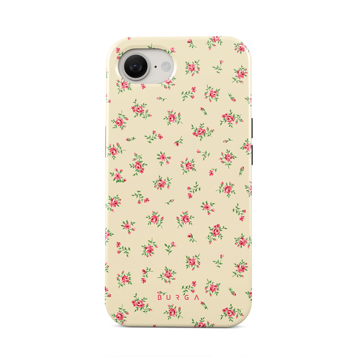 A daydream of soft pink petals on creamy yellow, reminiscent of that perfect light dress, twirling in the golden light of a lazy afternoon—that’s the Sundress iPhone 16e phone case design.