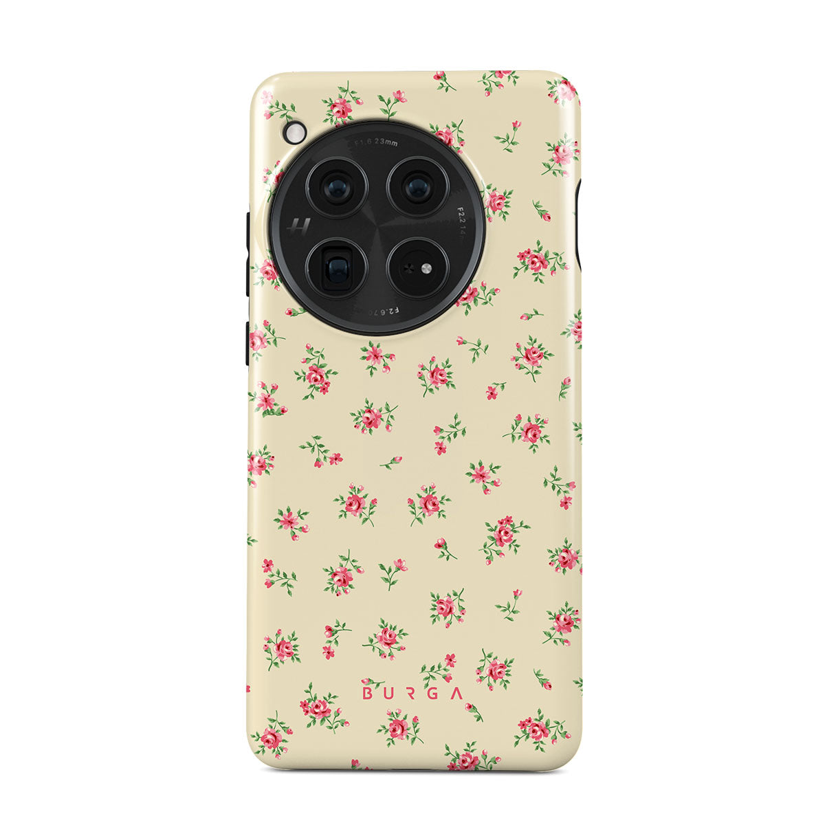 A daydream of soft pink petals on creamy yellow, reminiscent of that perfect light dress, twirling in the golden light of a lazy afternoon—that’s the Sundress OnePlus 12 phone case design.