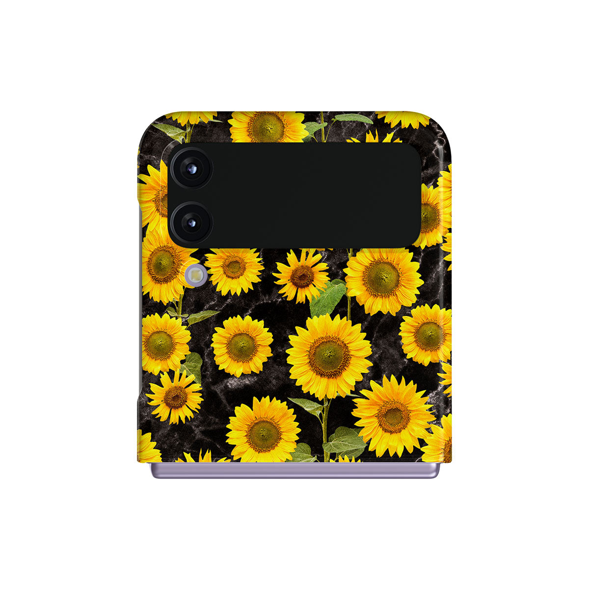 With our Sunflower Glimmer Samsung Galaxy Z Flip 4 phone case, you can have a bit of sunshine in your pocket. Let the flower pattern bring inspiration and warmth to your everyday life, and also, do not forget the ultimate plus: heavy-duty protection that our case offers for your phone!