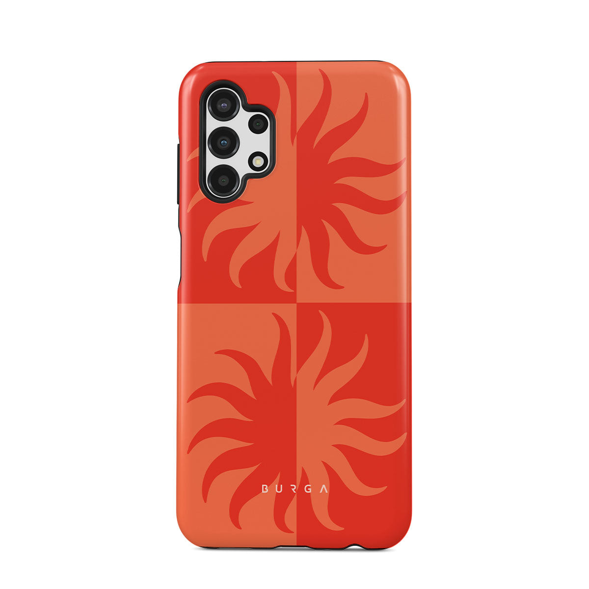 Feel the warmth with this fiery orange Samsung Galaxy A13 4G phone case design adorned with bold, radiant hues. Sunkissed captures the vibrant energy of sun-drenched days and the intense beauty of a tropical paradise. Perfect for those who love to stand out.