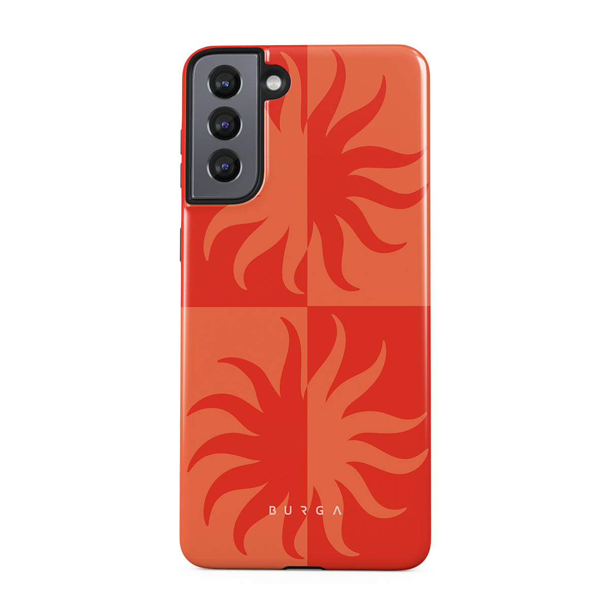 Feel the warmth with this fiery orange Samsung Galaxy S21 phone case design adorned with bold, radiant hues. Sunkissed captures the vibrant energy of sun-drenched days and the intense beauty of a tropical paradise. Perfect for those who love to stand out.