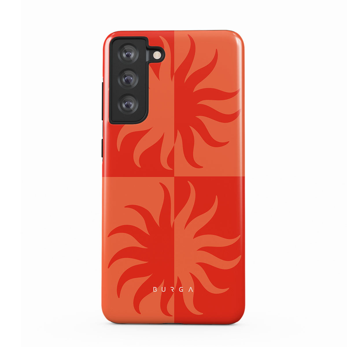 Feel the warmth with this fiery orange Samsung Galaxy S21 FE phone case design adorned with bold, radiant hues. Sunkissed captures the vibrant energy of sun-drenched days and the intense beauty of a tropical paradise. Perfect for those who love to stand out.