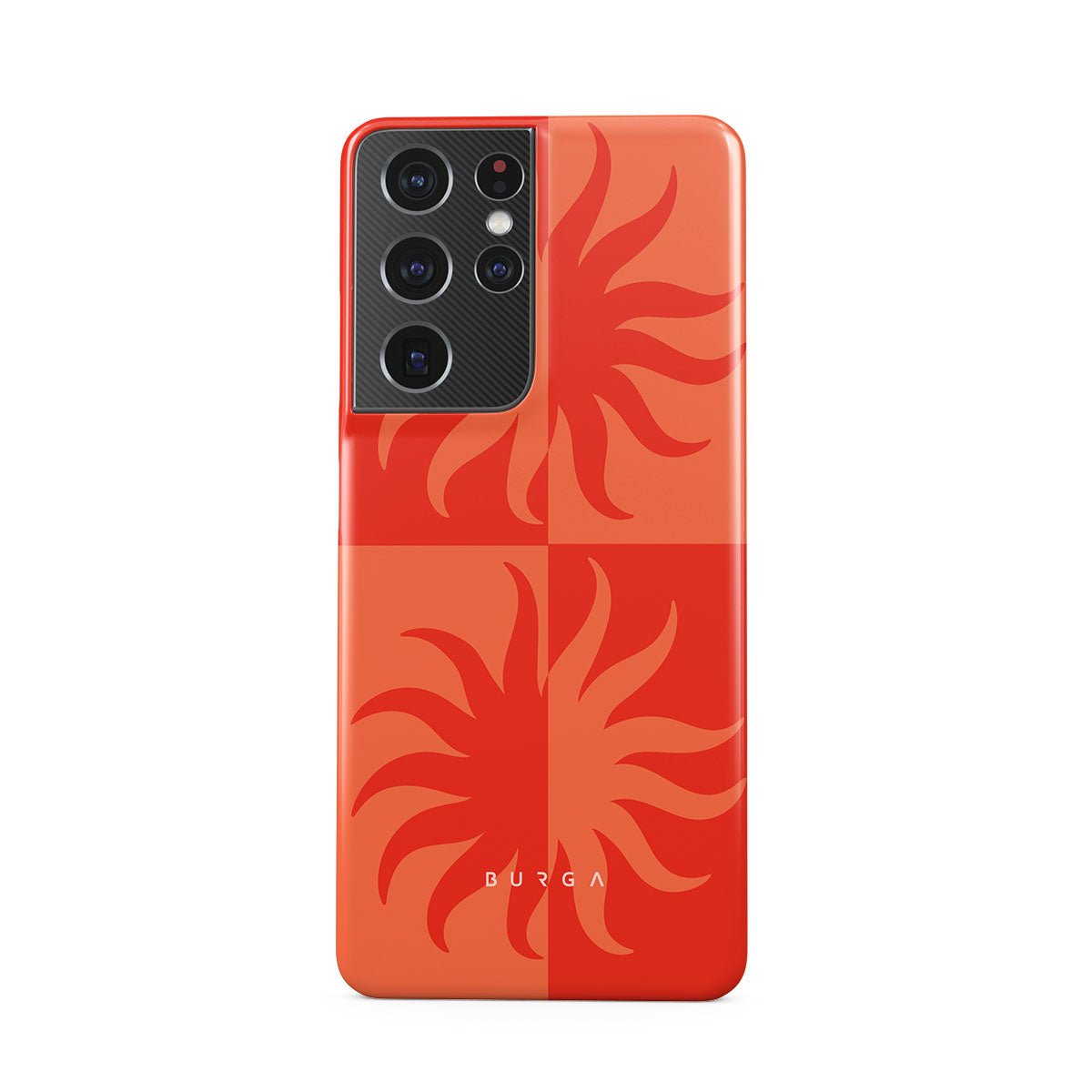 Feel the warmth with this fiery orange Samsung Galaxy S21 Ultra phone case design adorned with bold, radiant hues. Sunkissed captures the vibrant energy of sun-drenched days and the intense beauty of a tropical paradise. Perfect for those who love to stand out.