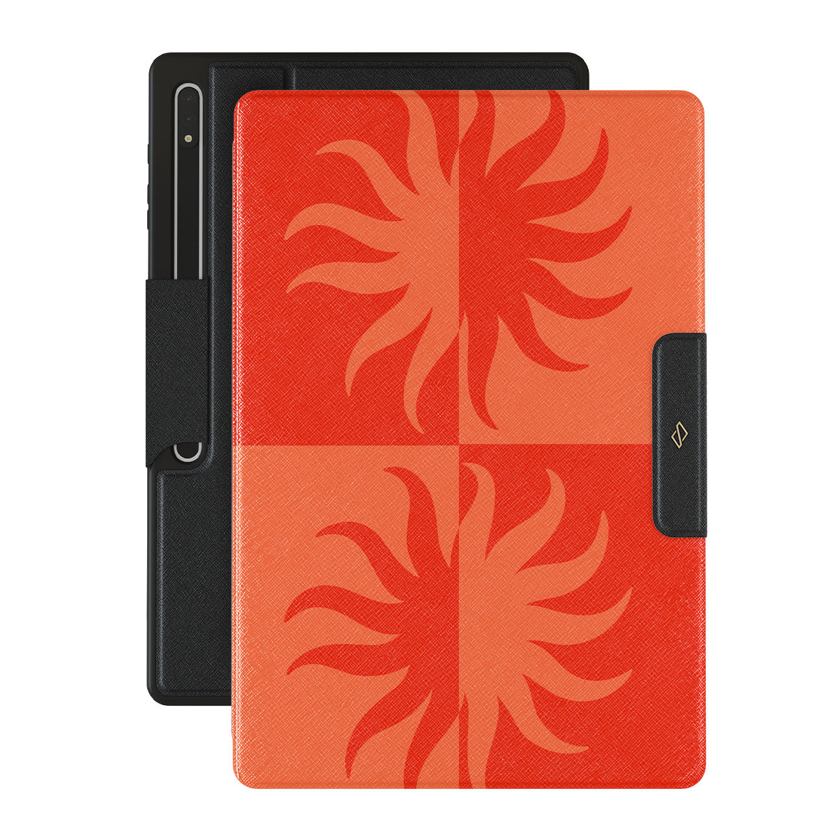 Feel the warmth with this fiery orange Samsung Galaxy Tab S8 Ultra folio case design adorned with bold, radiant hues. Sunkissed captures the vibrant energy of sun-drenched days and the intense beauty of a tropical paradise. Perfect for those who love to stand out.