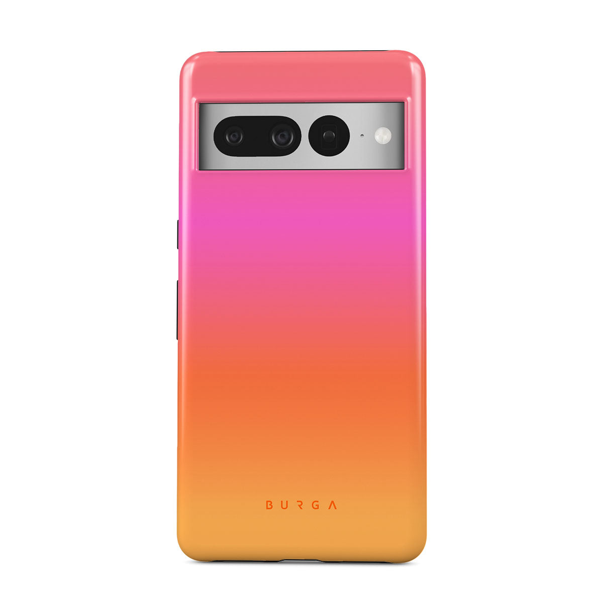 This Sunset Club Google Pixel 7 Pro phone case captures the mesmerizing hues of a fading sun, blending fiery oranges and passionate pinks that dance like the horizon at dusk. It's an everyday tribute to the light’s farewell kiss.