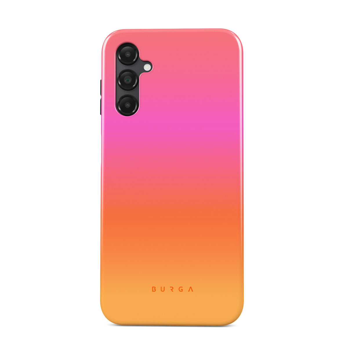 This Sunset Club Samsung Galaxy A25 phone case captures the mesmerizing hues of a fading sun, blending fiery oranges and passionate pinks that dance like the horizon at dusk. It's an everyday tribute to the light’s farewell kiss.