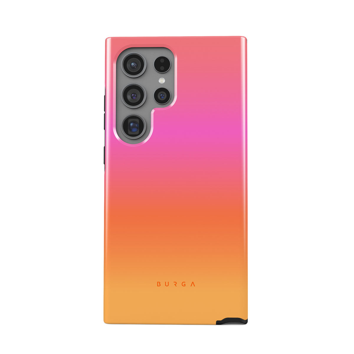 This Sunset Club Samsung Galaxy S24 Ultra phone case captures the mesmerizing hues of a fading sun, blending fiery oranges and passionate pinks that dance like the horizon at dusk. It's an everyday tribute to the light’s farewell kiss.