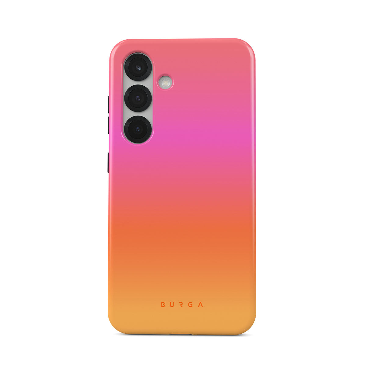 This Sunset Club Samsung Galaxy S25 phone case captures the mesmerizing hues of a fading sun, blending fiery oranges and passionate pinks that dance like the horizon at dusk. It's an everyday tribute to the light’s farewell kiss.