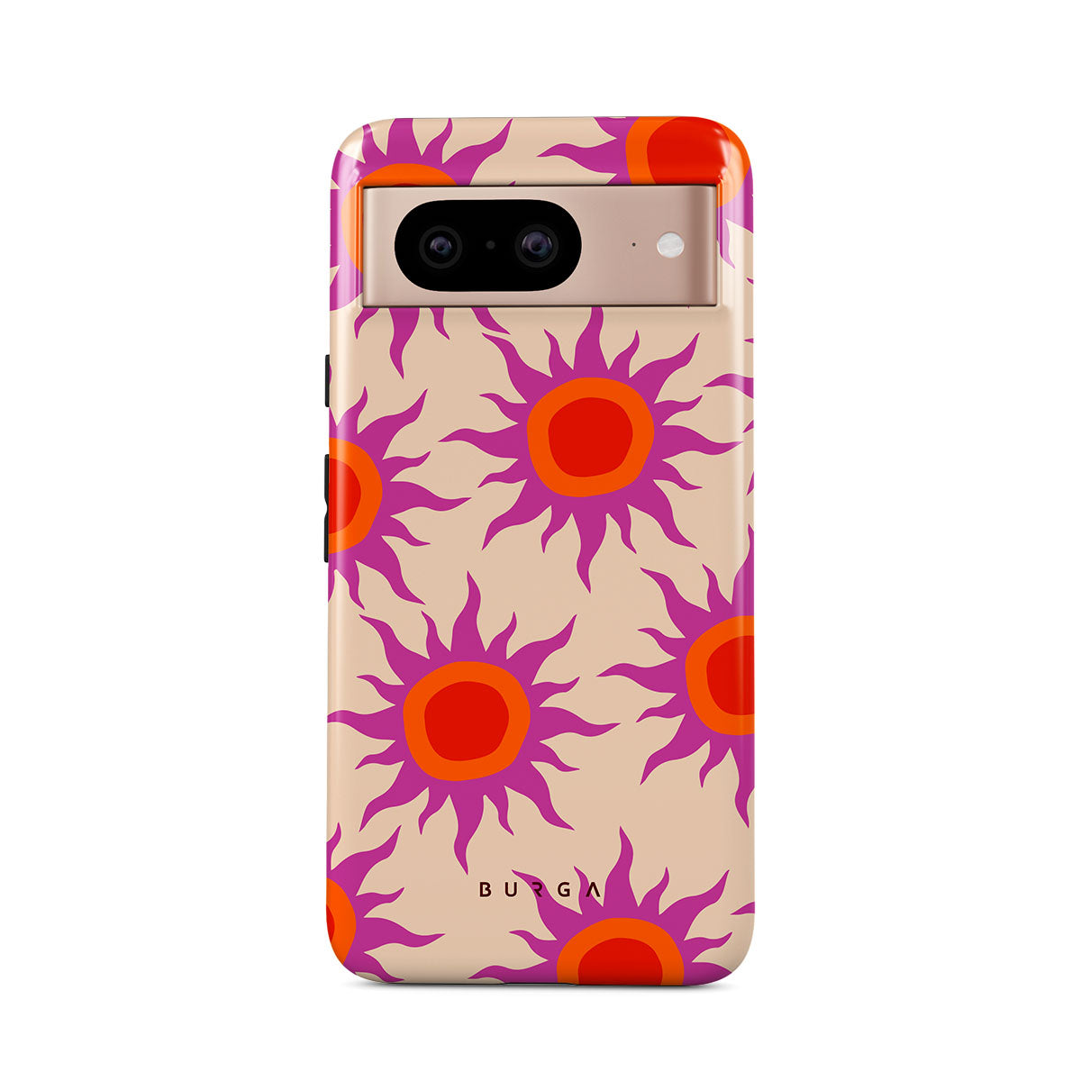 Discover the radiant serenity of the Sunset Glow design, a harmonious blend of soothing pastels and fiery suns. Vivacious viva magenta rays add a playful touch, perfectly balancing tranquility and dynamism. More than just a fashion accessory, this striking Google Pixel 8 phone case mirrors your unique personality and zest for life.