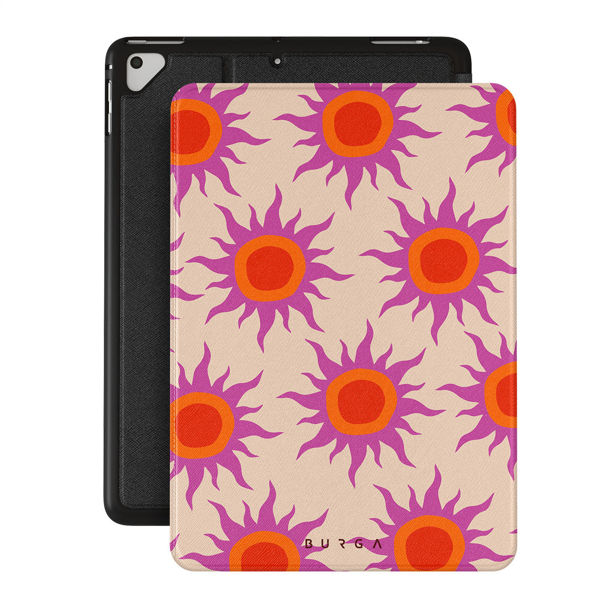 Discover the radiant serenity of the Sunset Glow design, a harmonious blend of soothing pastels and fiery suns. Vivacious viva magenta rays add a playful touch, perfectly balancing tranquility and dynamism. More than just a fashion accessory, this striking iPad 9.7 (6th/5th Gen) folio case mirrors your unique personality and zest for life.
