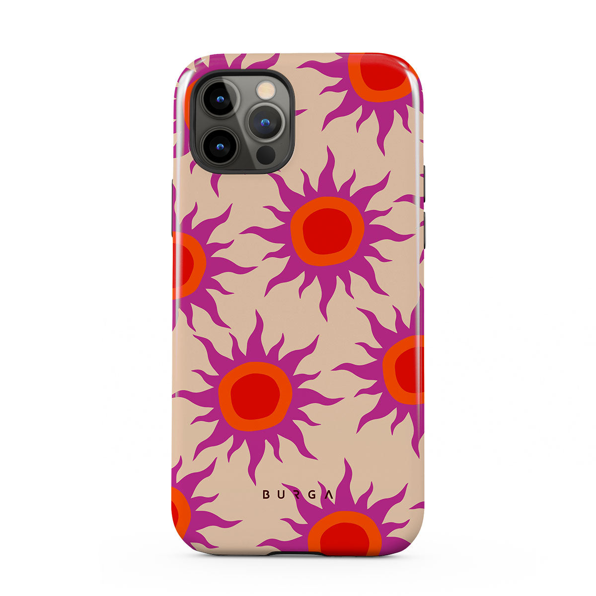 Discover the radiant serenity of the Sunset Glow design, a harmonious blend of soothing pastels and fiery suns. Vivacious viva magenta rays add a playful touch, perfectly balancing tranquility and dynamism. More than just a fashion accessory, this striking iPhone 12 Pro phone case mirrors your unique personality and zest for life.