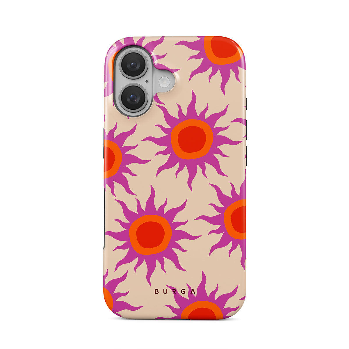Discover the radiant serenity of the Sunset Glow design, a harmonious blend of soothing pastels and fiery suns. Vivacious viva magenta rays add a playful touch, perfectly balancing tranquility and dynamism. More than just a fashion accessory, this striking iPhone 16 phone case mirrors your unique personality and zest for life.