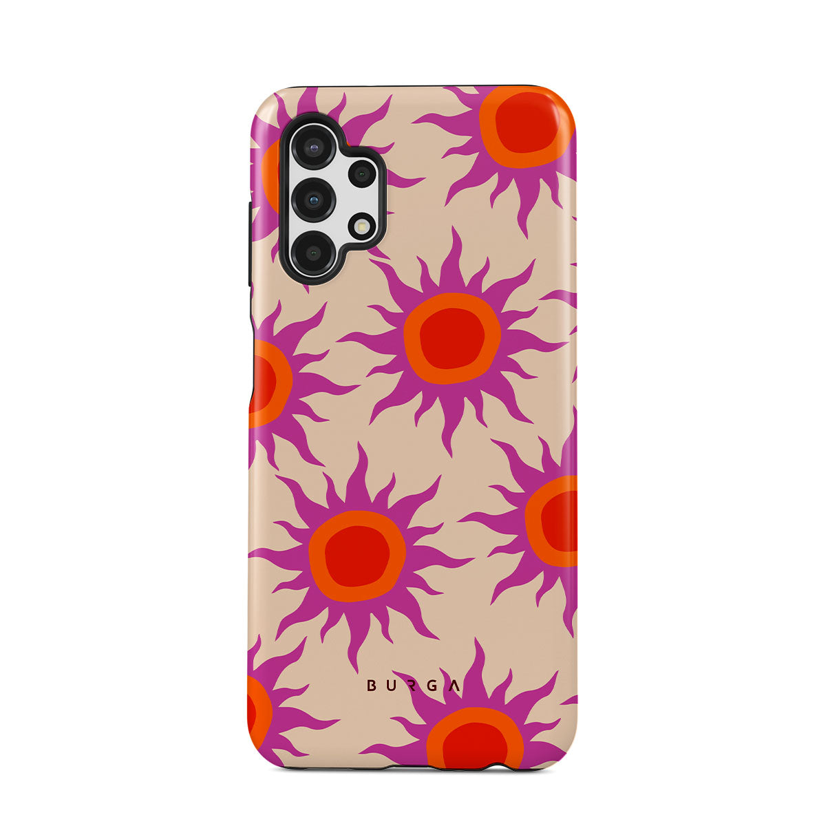 Discover the radiant serenity of the Sunset Glow design, a harmonious blend of soothing pastels and fiery suns. Vivacious viva magenta rays add a playful touch, perfectly balancing tranquility and dynamism. More than just a fashion accessory, this striking Samsung Galaxy A13 4G phone case mirrors your unique personality and zest for life.