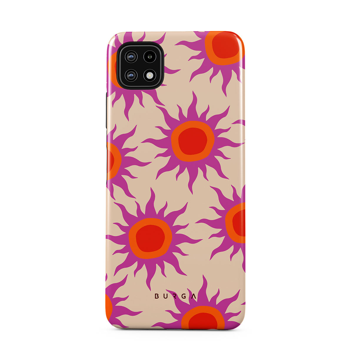 Discover the radiant serenity of the Sunset Glow design, a harmonious blend of soothing pastels and fiery suns. Vivacious viva magenta rays add a playful touch, perfectly balancing tranquility and dynamism. More than just a fashion accessory, this striking Samsung Galaxy A22 5G phone case mirrors your unique personality and zest for life.