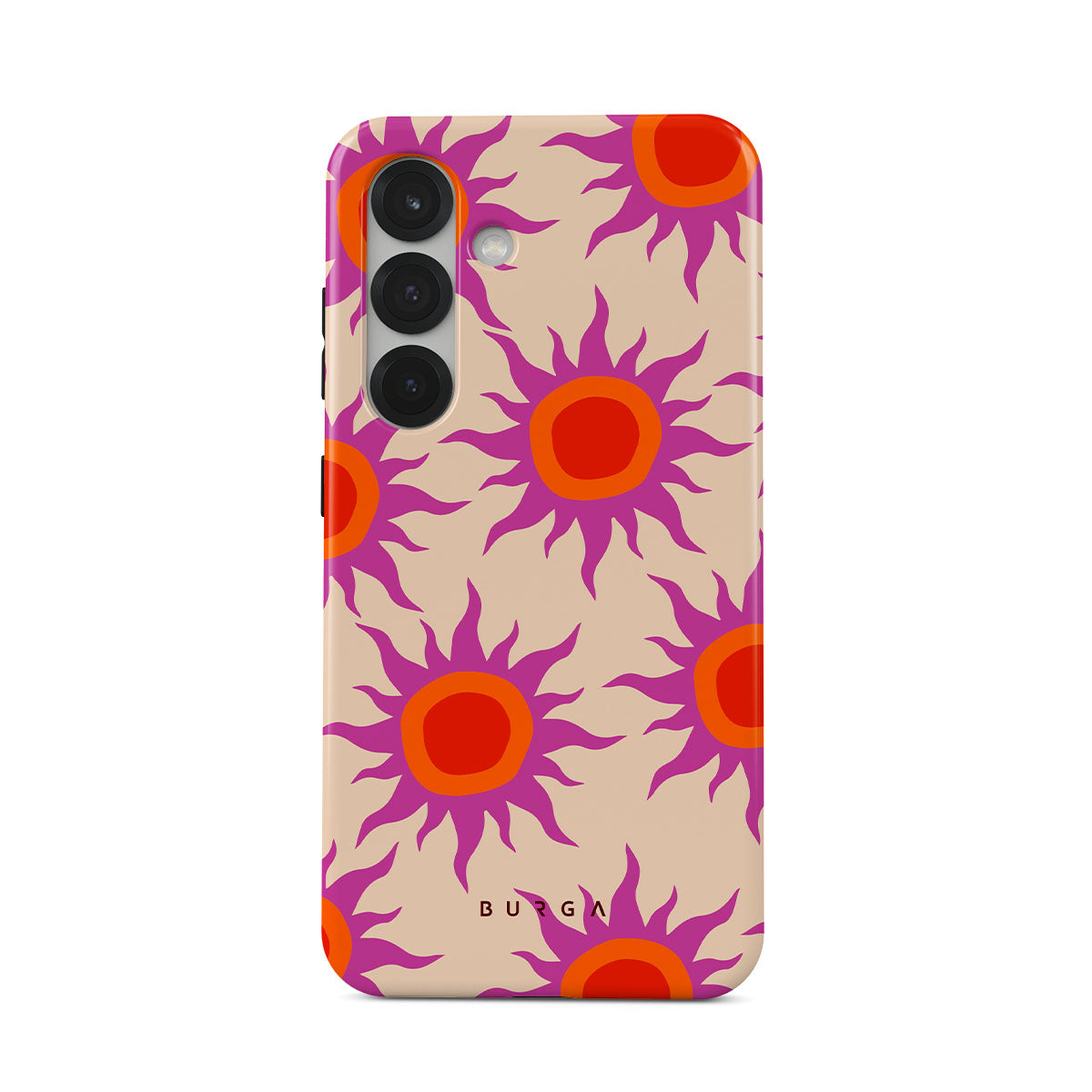 Discover the radiant serenity of the Sunset Glow design, a harmonious blend of soothing pastels and fiery suns. Vivacious viva magenta rays add a playful touch, perfectly balancing tranquility and dynamism. More than just a fashion accessory, this striking Samsung Galaxy S25 Plus phone case mirrors your unique personality and zest for life.