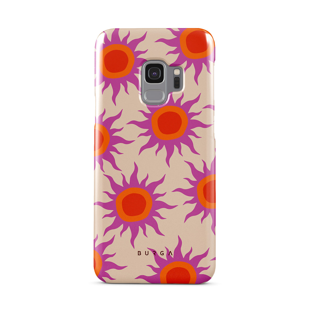 Discover the radiant serenity of the Sunset Glow design, a harmonious blend of soothing pastels and fiery suns. Vivacious viva magenta rays add a playful touch, perfectly balancing tranquility and dynamism. More than just a fashion accessory, this striking Samsung Galaxy S9 phone case mirrors your unique personality and zest for life.