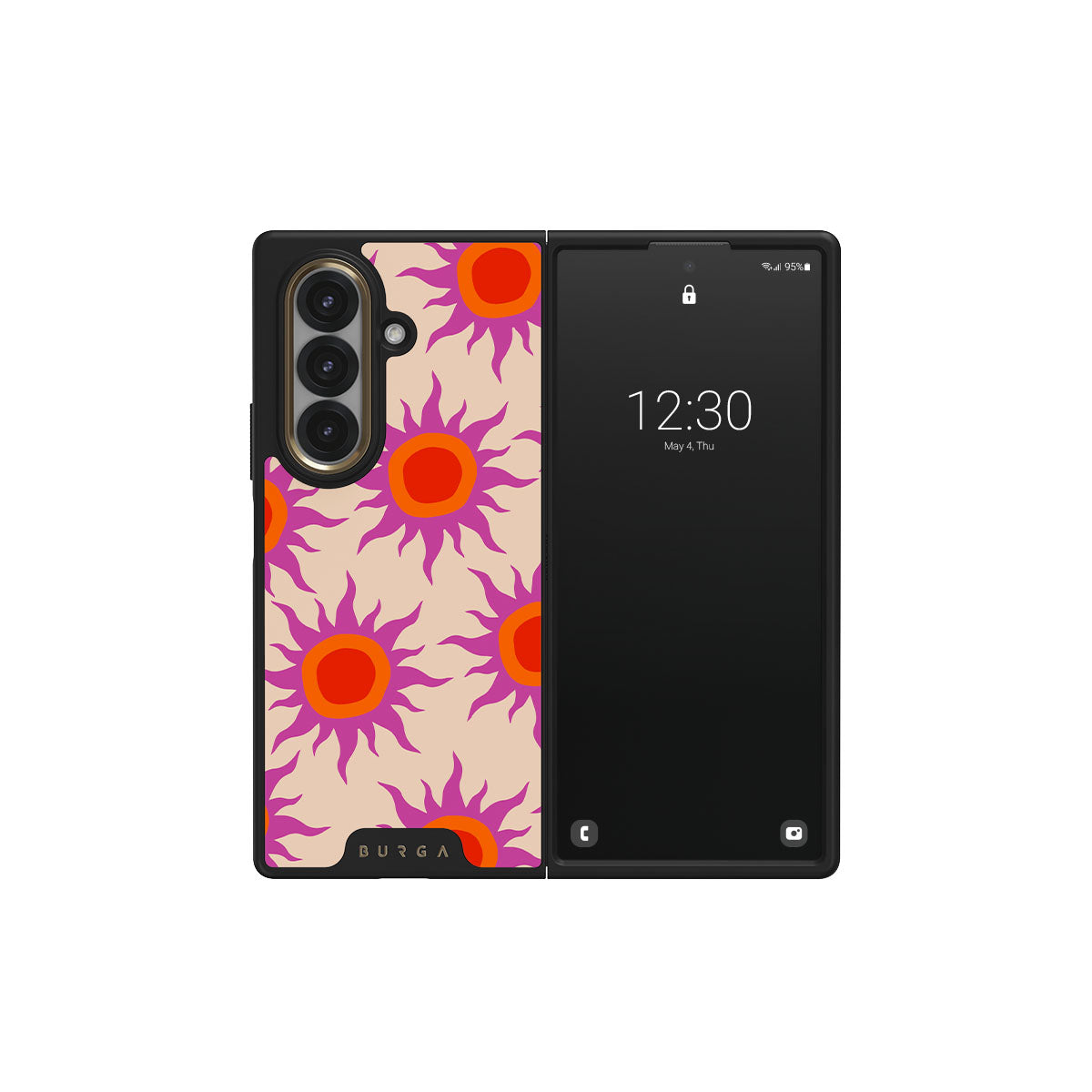 Discover the radiant serenity of the Sunset Glow design, a harmonious blend of soothing pastels and fiery suns. Vivacious viva magenta rays add a playful touch, perfectly balancing tranquility and dynamism. More than just a fashion accessory, this striking Samsung Galaxy Z Fold 7 phone case mirrors your unique personality and zest for life.