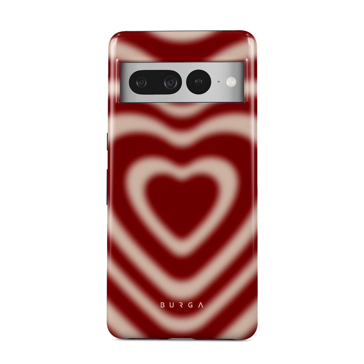 A hypnotic swirl, where deep shades of red dance together to form an iconic heart. Our Sweet Affair Google Pixel 7 Pro Case phone case design merges passion with elegance, making it an evergreen choice for those who love without bounds.