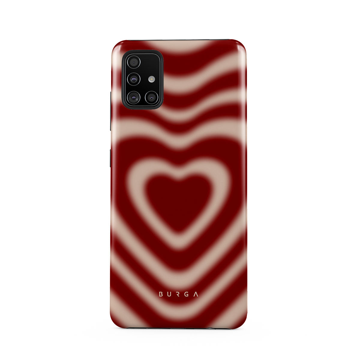 A hypnotic swirl, where deep shades of red dance together to form an iconic heart. Our Sweet Affair Samsung Galaxy A51 4G Case phone case design merges passion with elegance, making it an evergreen choice for those who love without bounds.