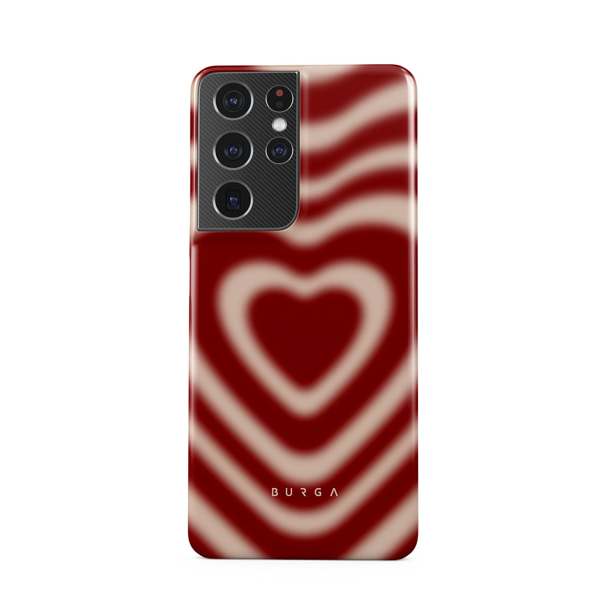 A hypnotic swirl, where deep shades of red dance together to form an iconic heart. Our Sweet Affair Samsung Galaxy S21 Ultra Case phone case design merges passion with elegance, making it an evergreen choice for those who love without bounds.