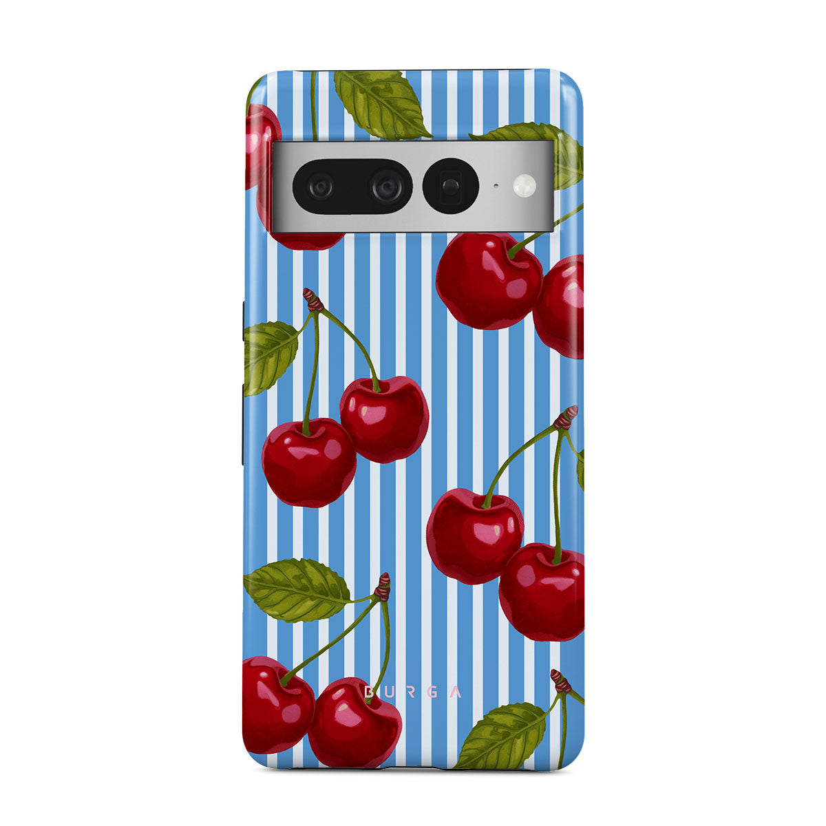 Cherries dangle like earrings from blue skies, a fun reminder of that first bite of summer, juicy and bursting with laughter. Meet our Sweet Moment Google Pixel 7 Pro phone case design.