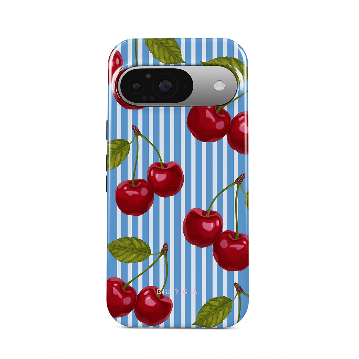Cherries dangle like earrings from blue skies, a fun reminder of that first bite of summer, juicy and bursting with laughter. Meet our Sweet Moment Google Pixel 9 phone case design.