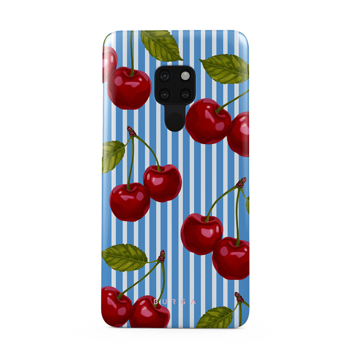 Cherries dangle like earrings from blue skies, a fun reminder of that first bite of summer, juicy and bursting with laughter. Meet our Sweet Moment Huawei Mate 20 phone case design.