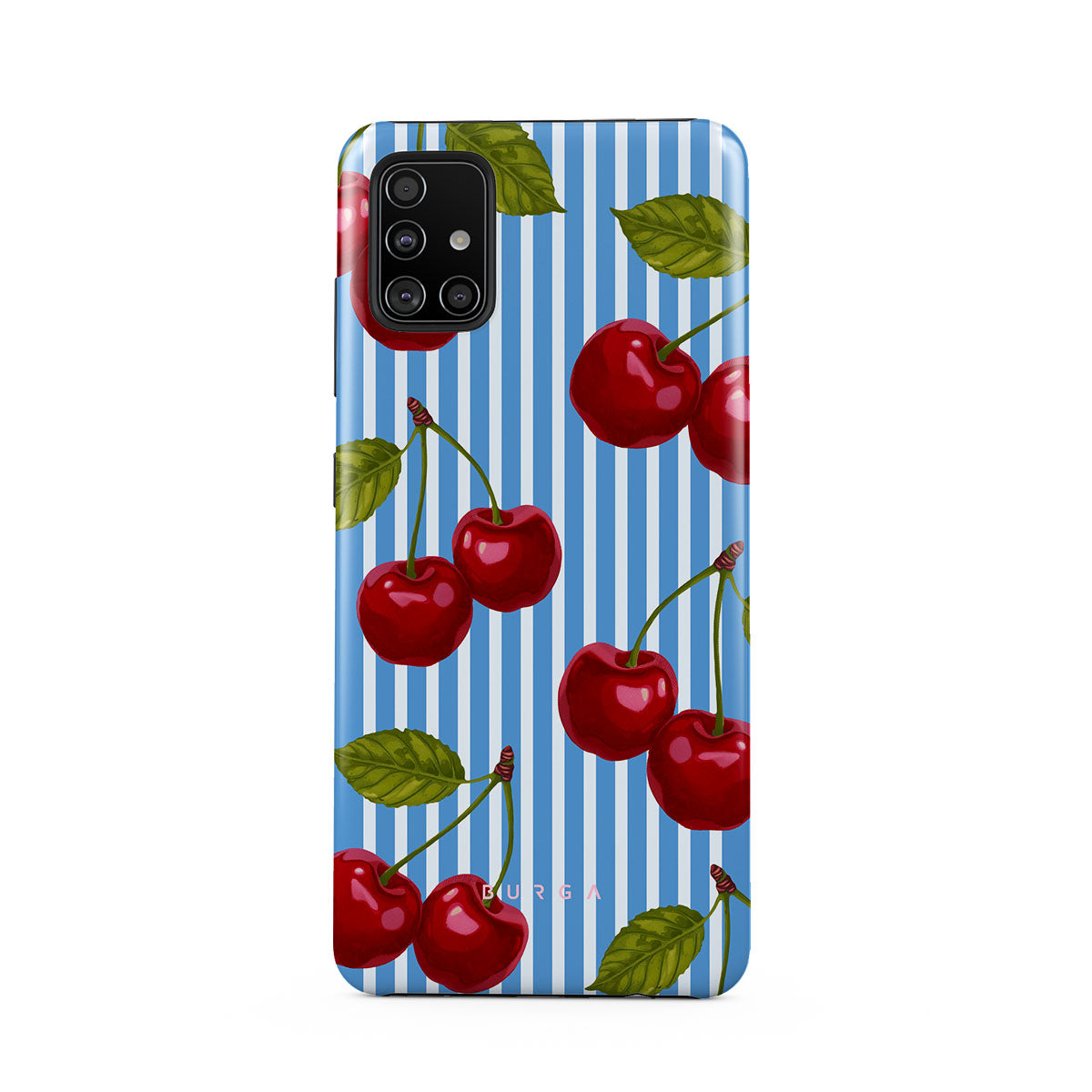 Cherries dangle like earrings from blue skies, a fun reminder of that first bite of summer, juicy and bursting with laughter. Meet our Sweet Moment Samsung Galaxy A51 4G phone case design.